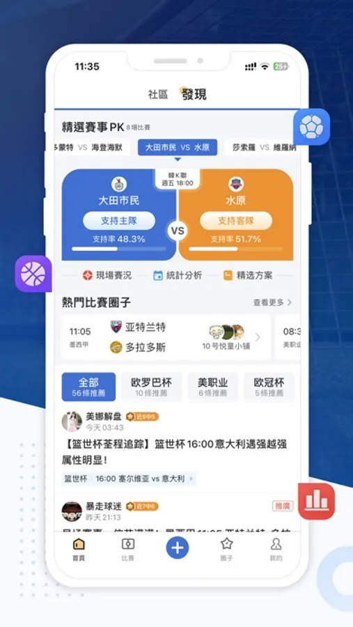球迅圈:聊天圈、足球篮球比分、动画直播与社区专家分析推荐一应俱全。