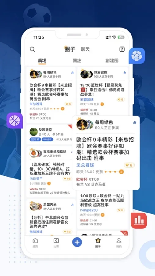 体育聊天圈,可以与其他体育迷交流,分享你的观点,与他人一起讨论比赛并可专家的足球推荐。无论是与志同道合的人互动,还是获取专家见解,聊天圈都是您深度体验体育的理想乐趣。