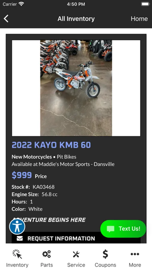 Maddie’s Motorsports dealership loyalty app provides customers with an enhanced user experience, including personalized coupons, specials and easy service scheduling.