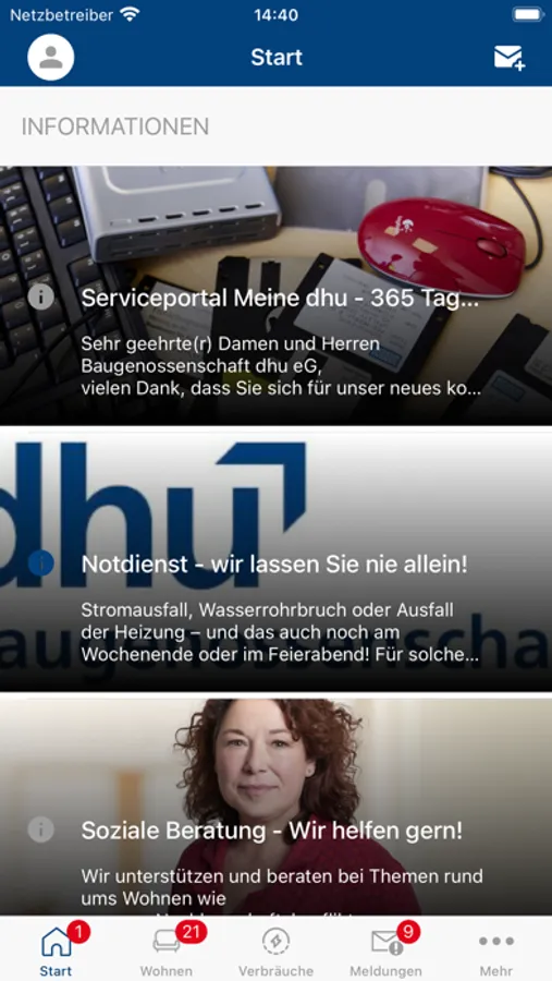 Mit unserem neuen Online-Service für Mieter und Mitglieder der dhu können Sie direkt, unkompliziert und zu jeder Zeit mit uns in Kontakt treten. Über Ihr Smartphone oder Ihr Tablet können Sie wichtige Unterlagen zu Ihrem Mietverhältnis und Ihrer Mitgliedschaft einsehen. Sie erhalten einen Überblick über Ihre Mietverträge – egal ob es sich um Wohnungs-, Stellplatz- oder Garagenverträge handelt. Sie können Sie verschiedene Dokumente über die App jederzeit und von jedem Ort mobil aufrufen. Sie haben zudem die Möglichkeit, Ihre persönlichen Daten wie Kontaktinformationen und Bankverbindungen schnell und unkompliziert zu ändern.