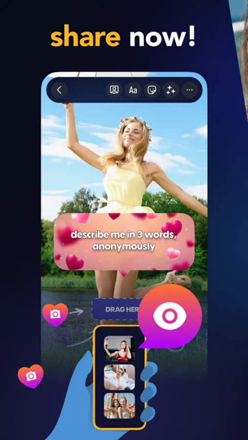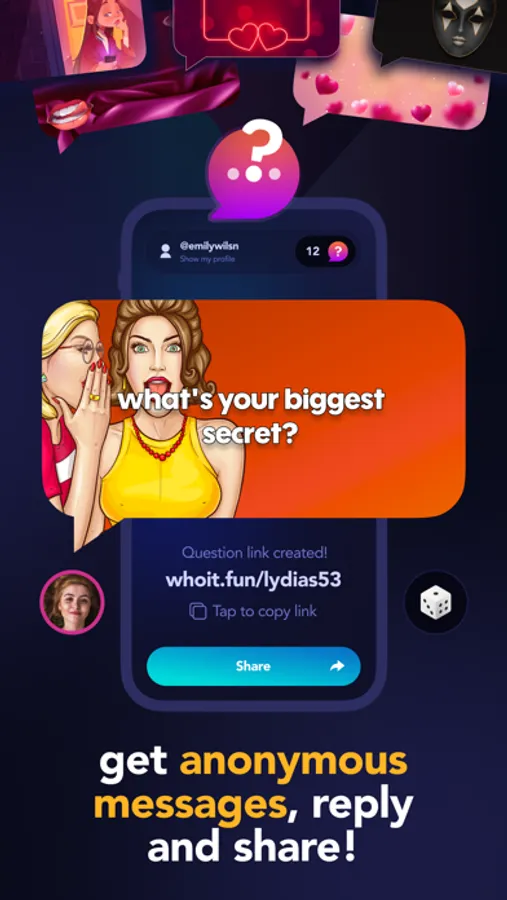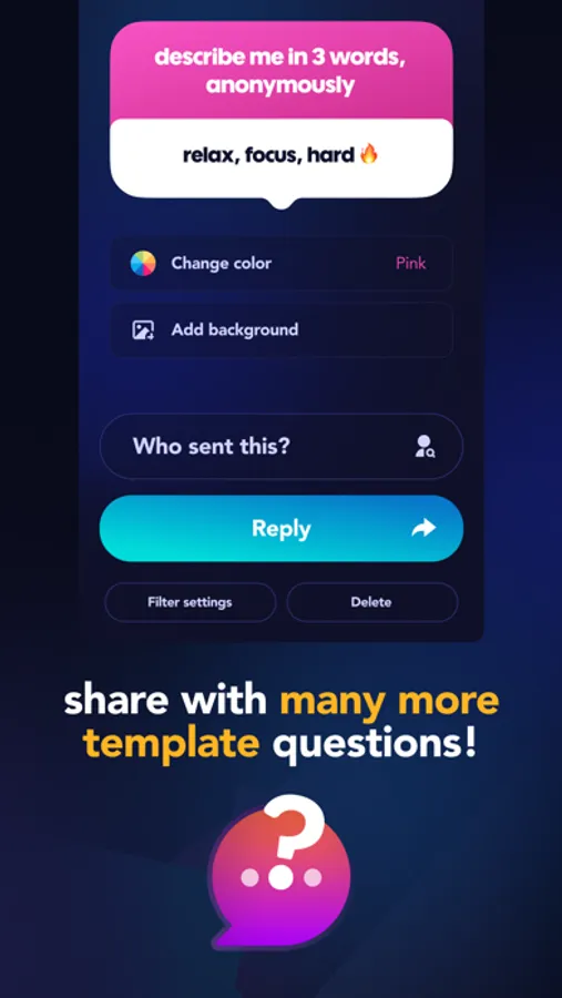 Your followers can send you questions anonymously. You can receive anonymous pictures and reply to them on your social media.