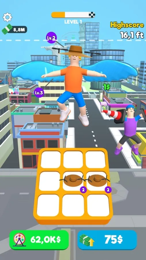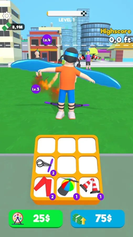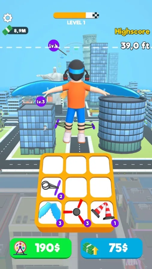Click and fly faster. Buy new objects and fly higher.