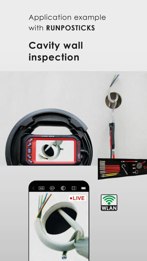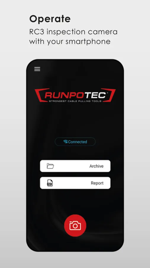 This app enables extended functions for the RUNPOTEC RC3 inspection camera.