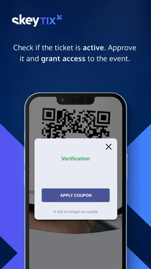 SkeyTix receives the form of a QR code with an encrypted token address on the blockchain network and information created by the organizer (e.g. event website address, agenda, map, etc.). After scanning the QR code with the phone, the participant of the event sees the information added by the organizer. After scanning the code in the dedicated application, the organizer (his employee/representative) sees a unique ticket that can be approved (burned), granting the authorized person access to the event/event.