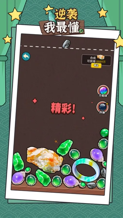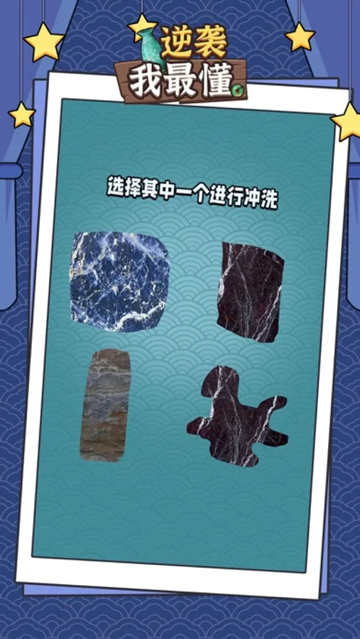 这是一款模拟古董淘宝类游戏,你需要在摊位中挑选心仪的原石进行冲洗开宝,是开到蜜制红枣,还是绝世珍品红宝石,是一夜暴富还是血本无归,就看你的运气了~