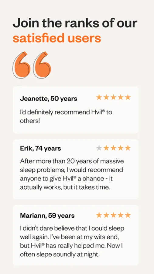 - Your personal diary: Hvil® helps you track your sleep from day to day.