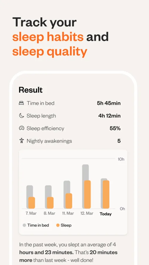 - Follow your progress: You can continuously see how your sleep habits and sleep quality are developing.