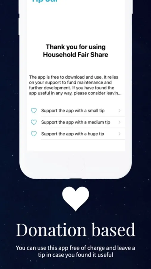 Household Fair Share is completely free, maintenance and further development relies on donations.