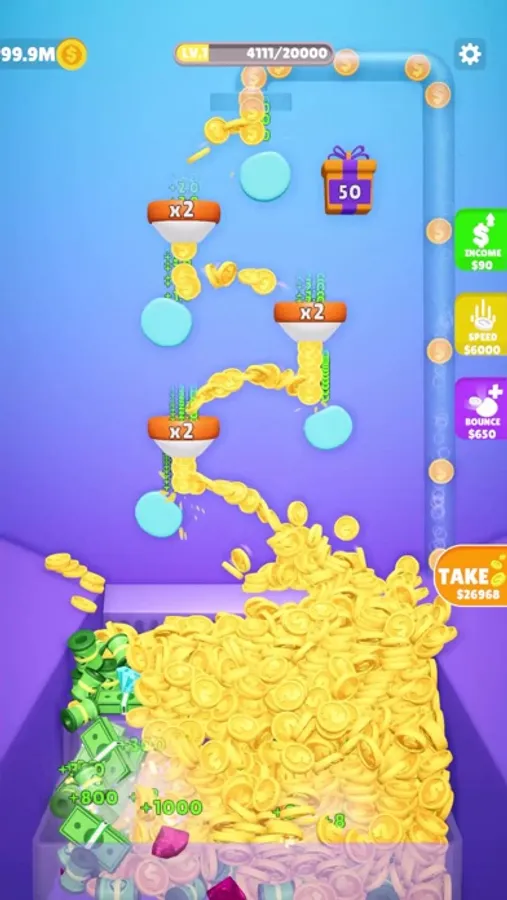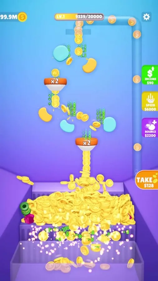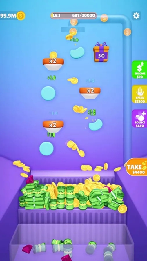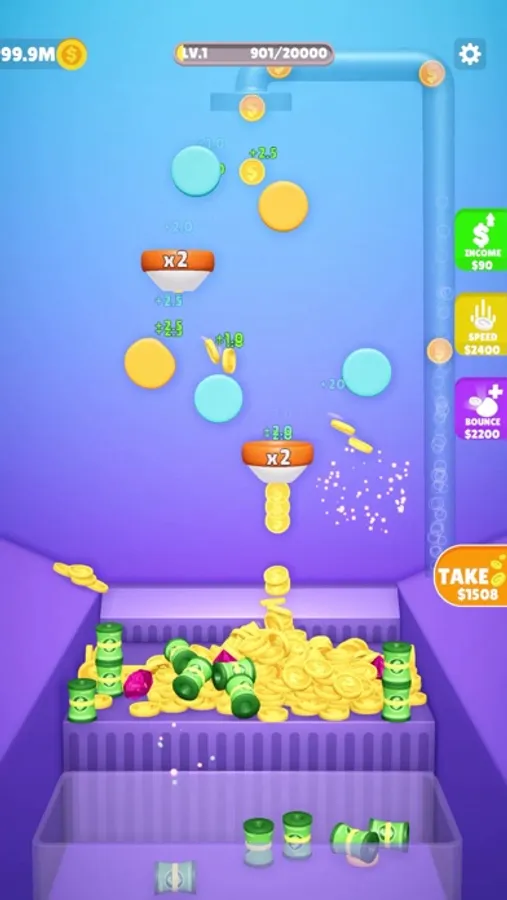 Claim your coins to add more bouncers, increase speed, and level up.