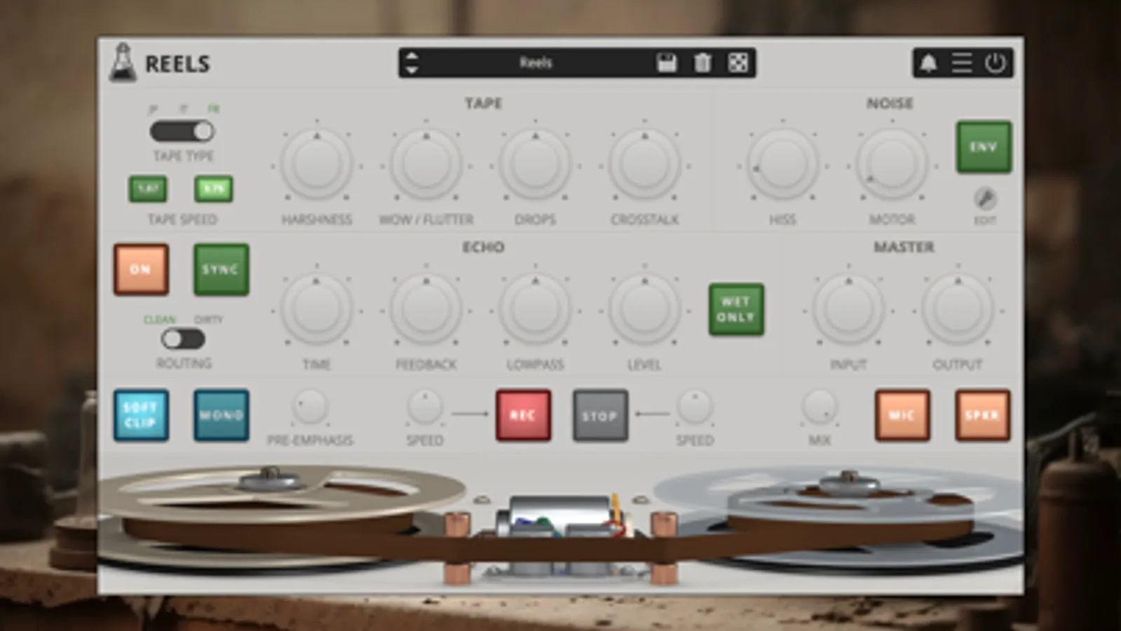 It's based on an old Japanese portable tape recorder with a very distinct Lo-Fi analog sound. Reels emulates all the imperfections of consumer reel-to-reel recorders.