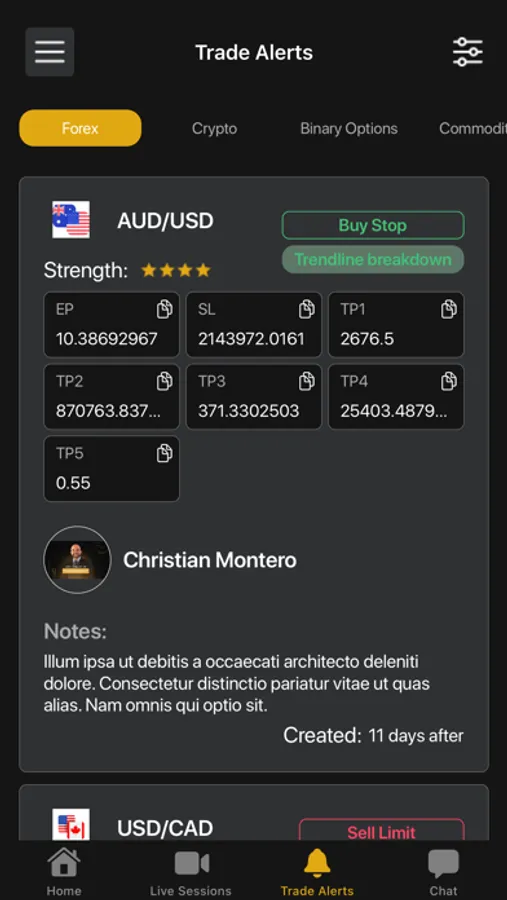 Trade Alerts: View our trade alerts in real-time from our mobile app. Our trade alerts come directly from our educators. Discover the best entry and exit points within Forex, Crypto, Commodities, and Indices.