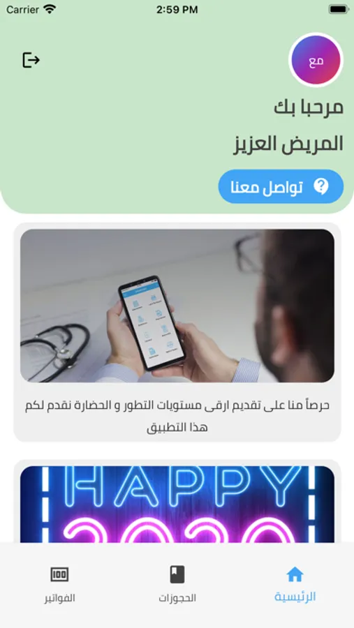 3- ارسال اشعارات بالتحديثات ومواعيد الحجوزات للمريض