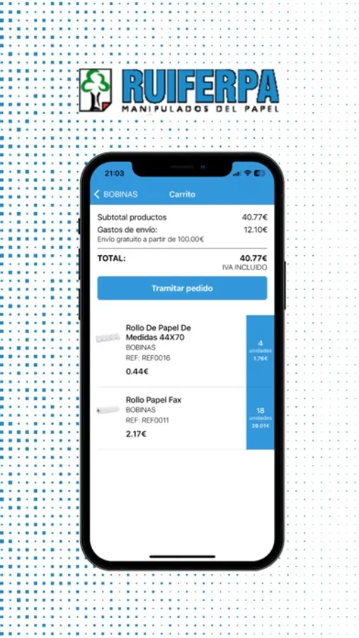 Ahora, desde nuestra nueva aplicación móvil, podrás ver nuestro catálogo siempre actualizado, comprobar tu tarifa y realizar tus pedidos de la manera más cómoda.