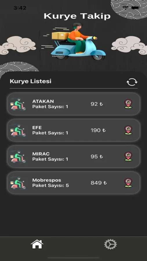 Kurye Takip uyulaması ile paketçinizde ne kadar paket olduğu veya toplam paketlerin tutarı gibi bilgileri anlık izleyebilirsiniz.