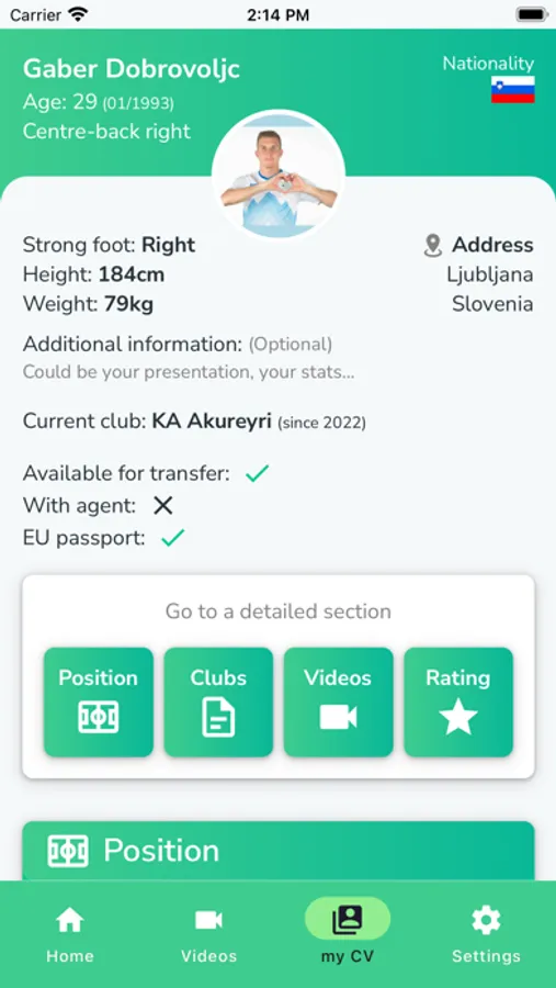 As a football player, create a professional CV, where you can share your skills, videos and statistics.
