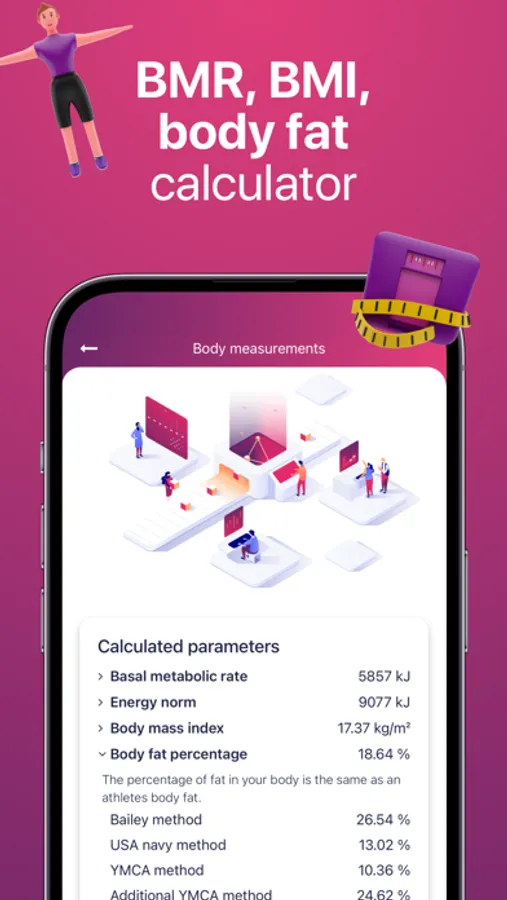 Find out your body fat percentage with a unique and specially trained neural network. You only need to upload one full-length (head to toe) photo so the app can recognize the percentage of fat in your body. Your photos will be analyzed and no living person will get access to them.