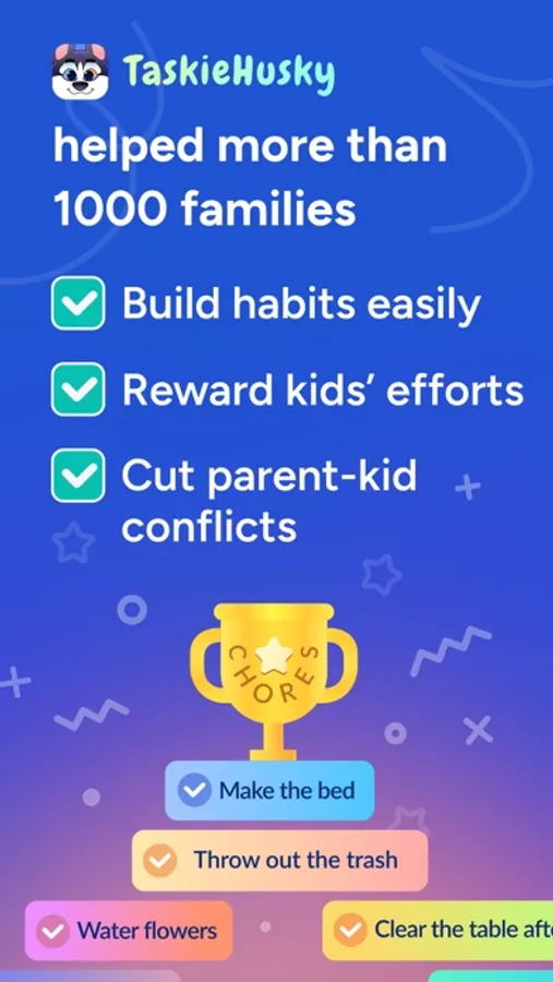 TaskieHusky is a gamified To-do & Productivity App for parents that helps motivate their kids to do daily chores, acquire positive habits, get self-organization skills, do their homework, and take responsibility. Give your child tasks and choose rewards. The app will do the rest.