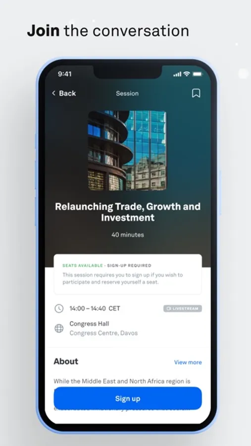 Forum Live is the essential companion app designed to revolutionise your event experience. Built from the ground up as a modern events app, it is designed to elevate your end-to-end journey at World Economic Forum events.