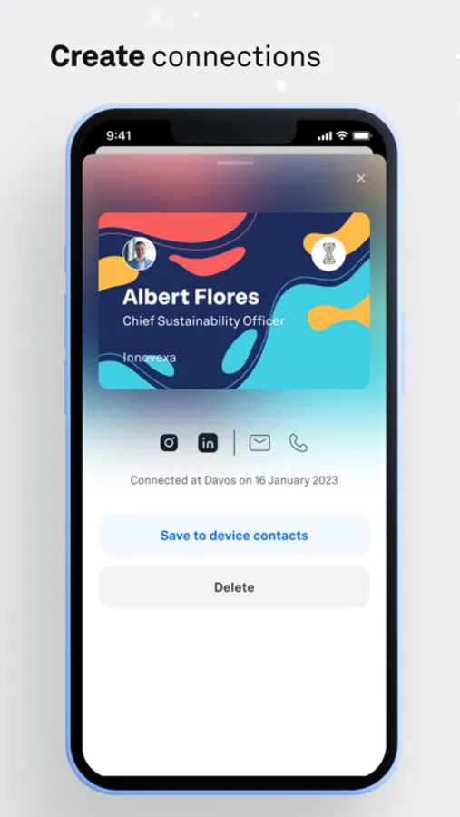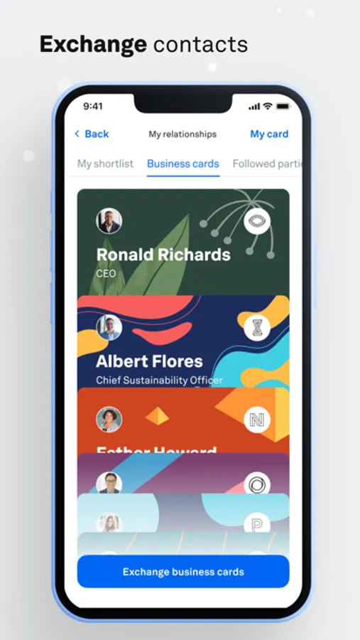 * Met someone interesting? Get their digital business card by simply scanning their event badge. You can even save the business card details to your device contacts.