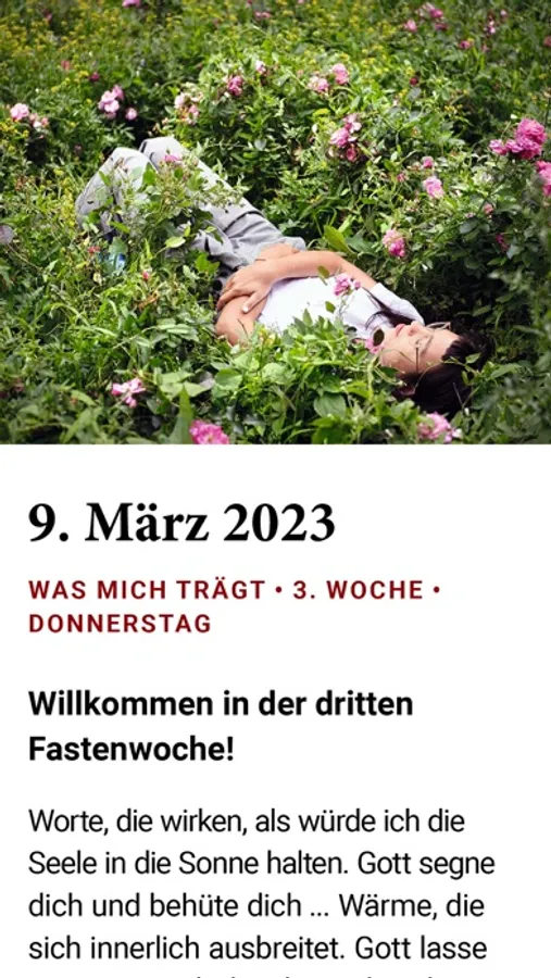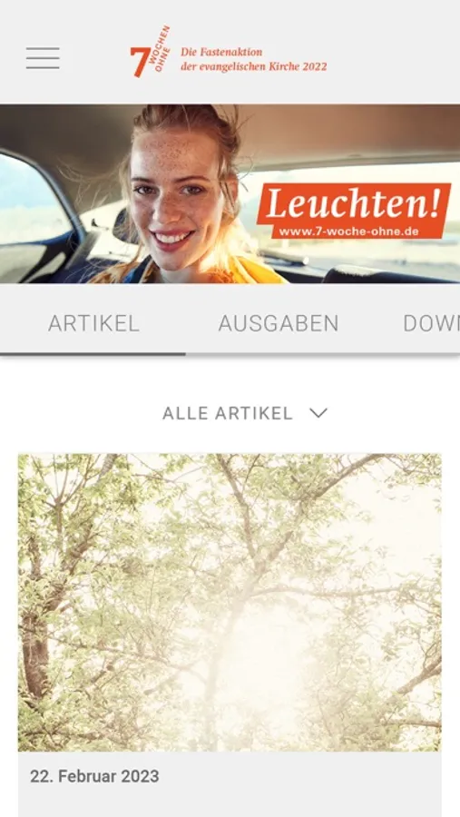 „7 Wochen Ohne“, das ist die Fastenaktion der evangelischen Kirche. Sie lädt jedes Jahr unter einem anderen Motto dazu ein, die Zeit zwischen Aschermittwoch und Ostern bewusst zu erleben und zu gestalten. Der Fastenkalender „7 Wochen Ohne“ bietet dazu Anregungen in sorgfältig ausgewählten Texten und Bildern. Sieben Wochen lang wird das Motto in unterschiedlichen Aspekten durchbuchstabiert. Dabei geht es nicht um Verzicht im wörtlichen Sinne, sondern um das Fasten im Kopf: sieben Wochen lang die Routine des Alltags unterbrechen und neue Perspektiven wagen! Millionen Menschen lassen sich jährlich darauf ein: für sich allein, in Familien oder als Fastengruppe in Gemeinden. Mit der „7 Wochen Ohne“-App können Sie Text und Bild des Fastenkalenders Tag für Tag sowie die wöchentlichen Fastenmails auf dem Tablet oder Smartphone genießen.