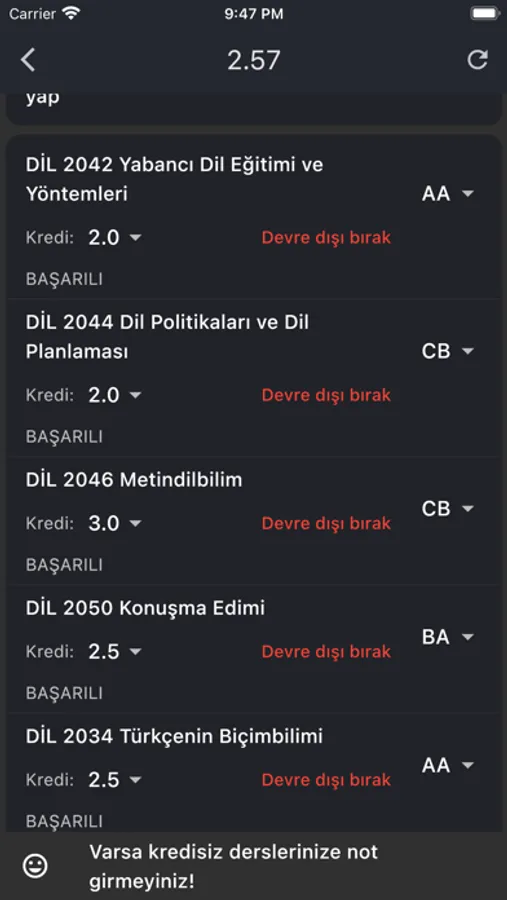 Notlarınızı değiştirerek kümülatif ortalamanızı hesaplama ve resmi külümülatif ortalamanızı görme.