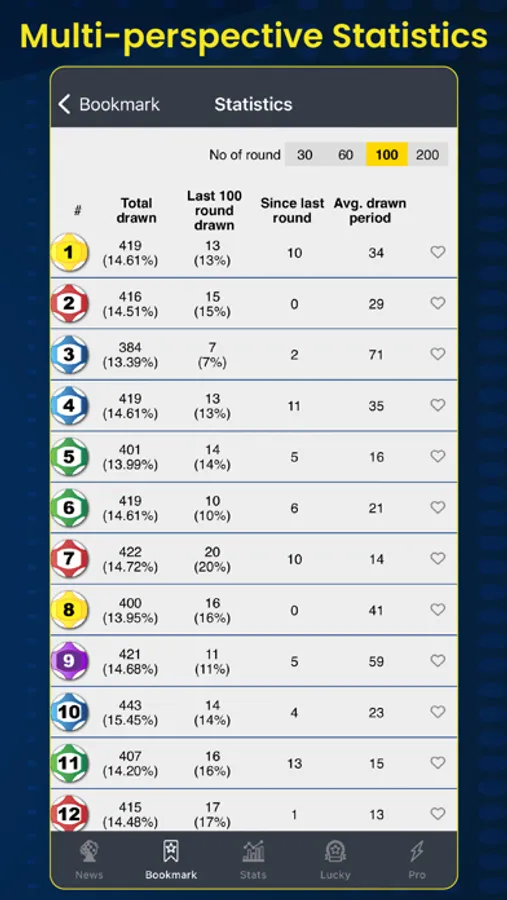 Analyze the occurrence from past result and visualise in multi-perspective statistics which helps you to pick numbers effectively