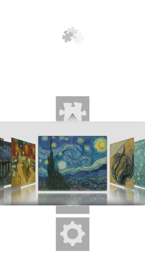 You get 45 paintings to play in three difficulty levels: - easy: up to 16 pieces (iPhone), or 49 (iPad); - normal: up to 49 pieces (iPhone), or 81 (iPad); - hard: up to 81 pieces (iPhone), or 169 (iPad).