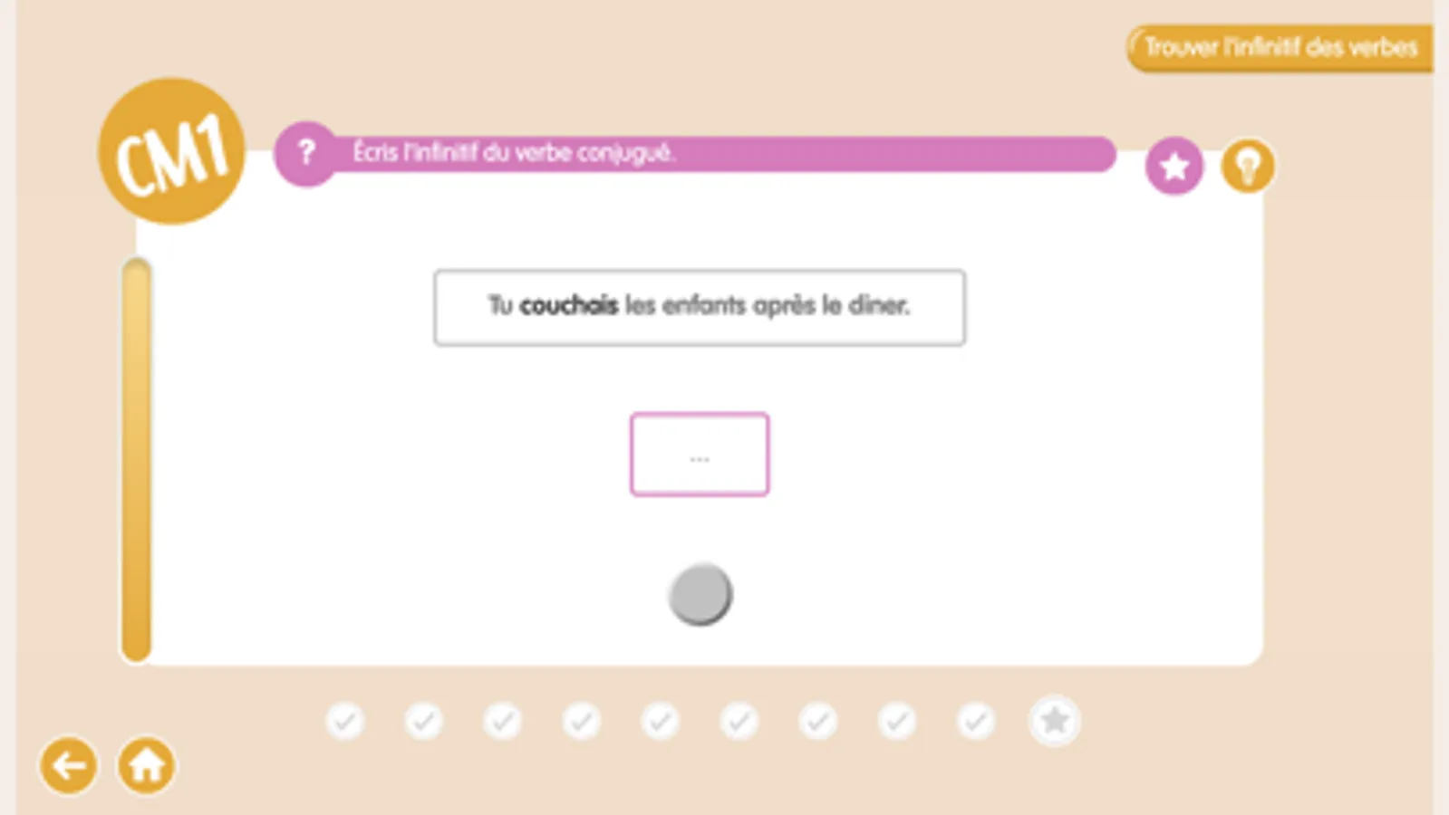 Quizztop+ Conjugaison CM2 propose 10 exercices déclinés en 3 niveaux :