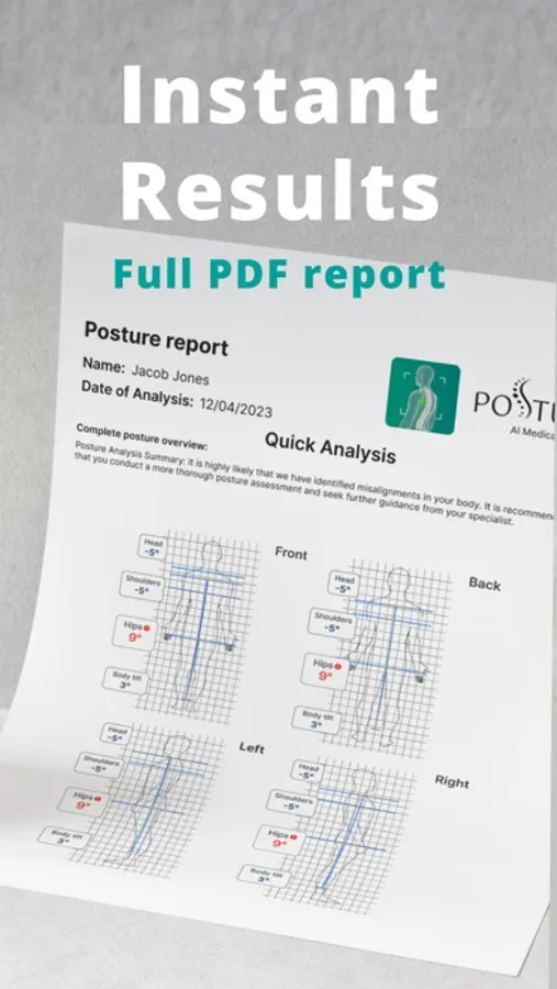 DISCLAIMER: Posture is a helping posture evaluation tool, the results of which are not a diagnosis and require the confirmation of a professional doctor. Do not use the program as the only tool for treating and evaluating posture problems.