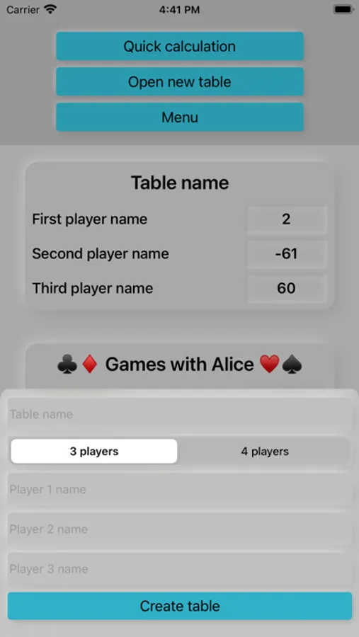 The application allows not only to make a quick calculation, but also to save various tables and evenings.