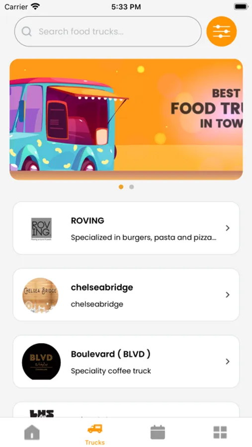 The application can sort the trucks by area or by the type of food they serve. the different categories of food can cover everything from burgers to pizza, from coffee to juices, and so much more to fulfil every appetite possible.