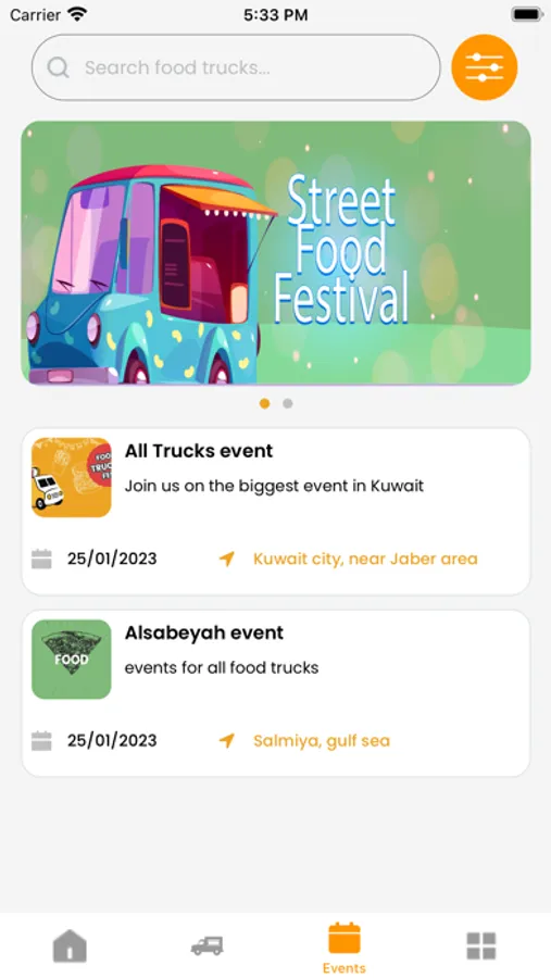 2. Showing the current and upcoming events to feature the most amazing food trucks with every food that comes to mind all in one place.