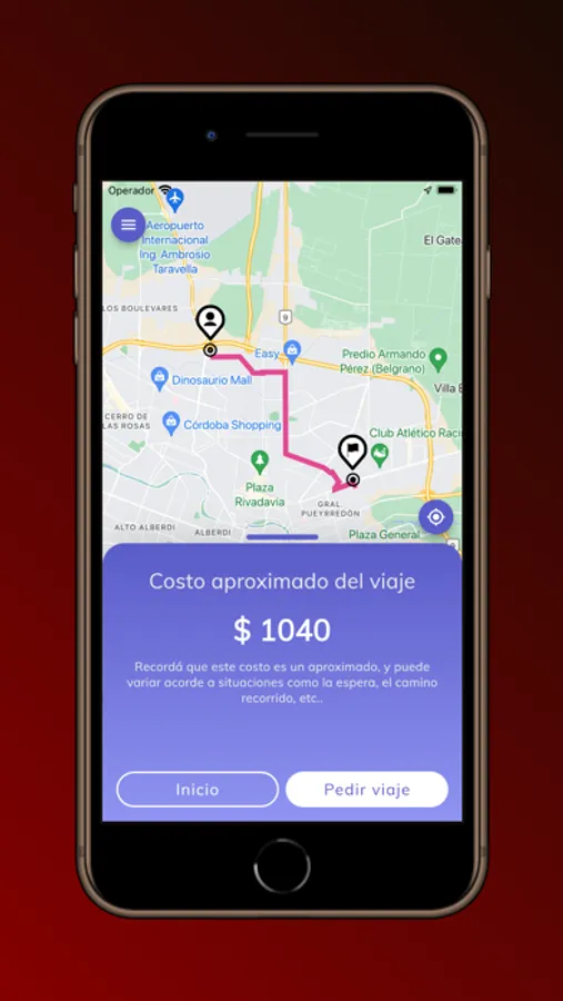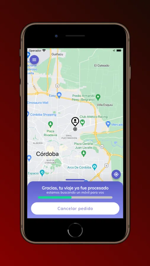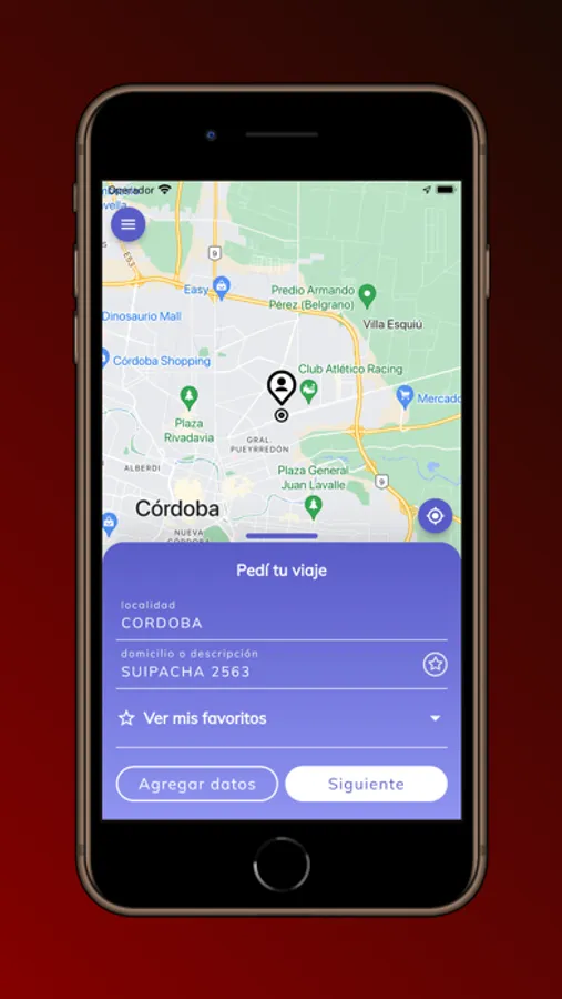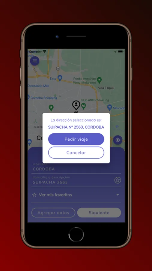 - Solicitud de viajes desde una ubicación elegida sobre un mapa o carga manual de calles.