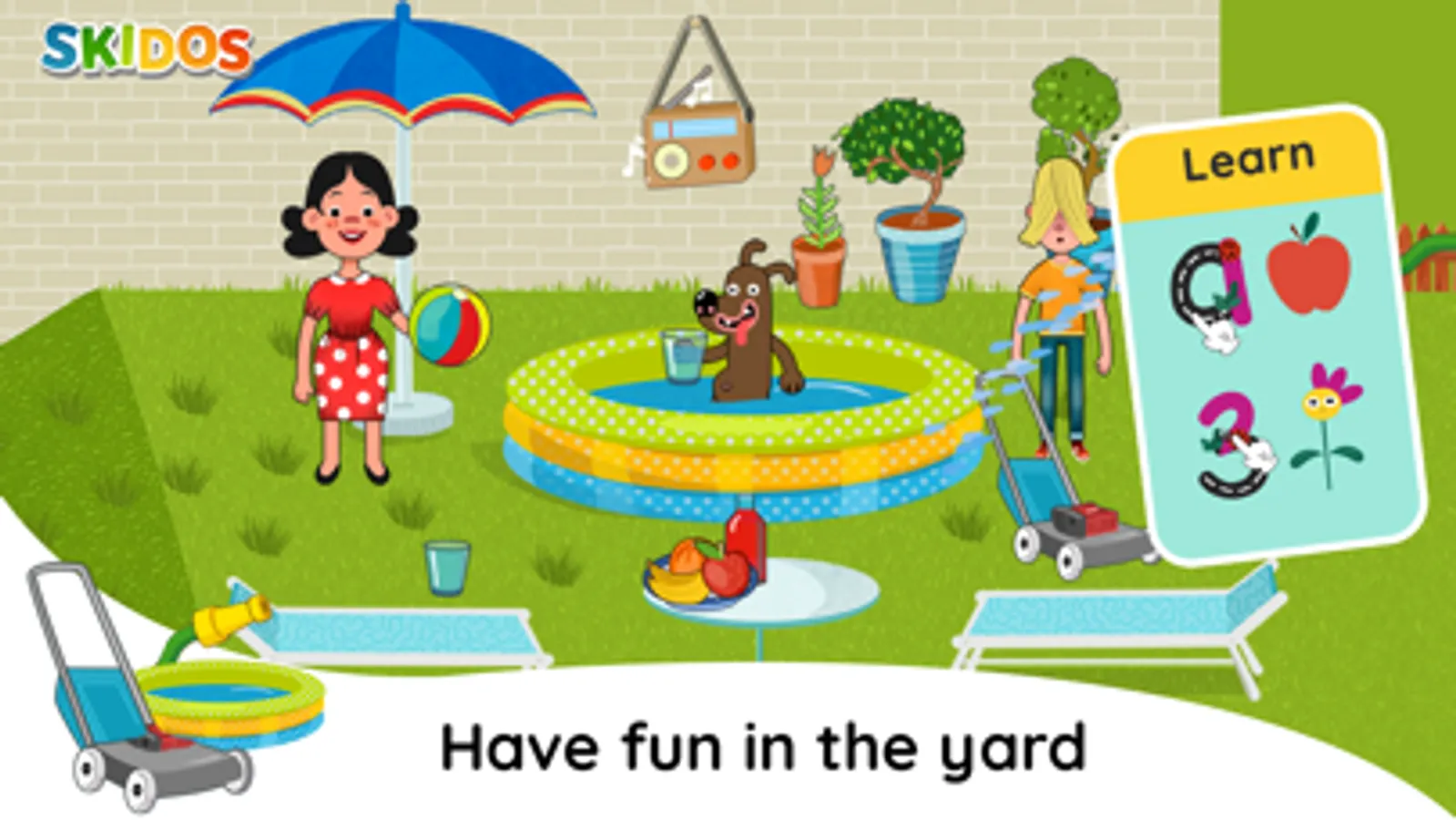 Learning House is a fun educational game where kids can learn daily life in a household and become better at number and letter tracing, or mathematics! The game offers multiple activities in 8 areas of the house, as well as 10 different characters - a sweet family with cute little pets.