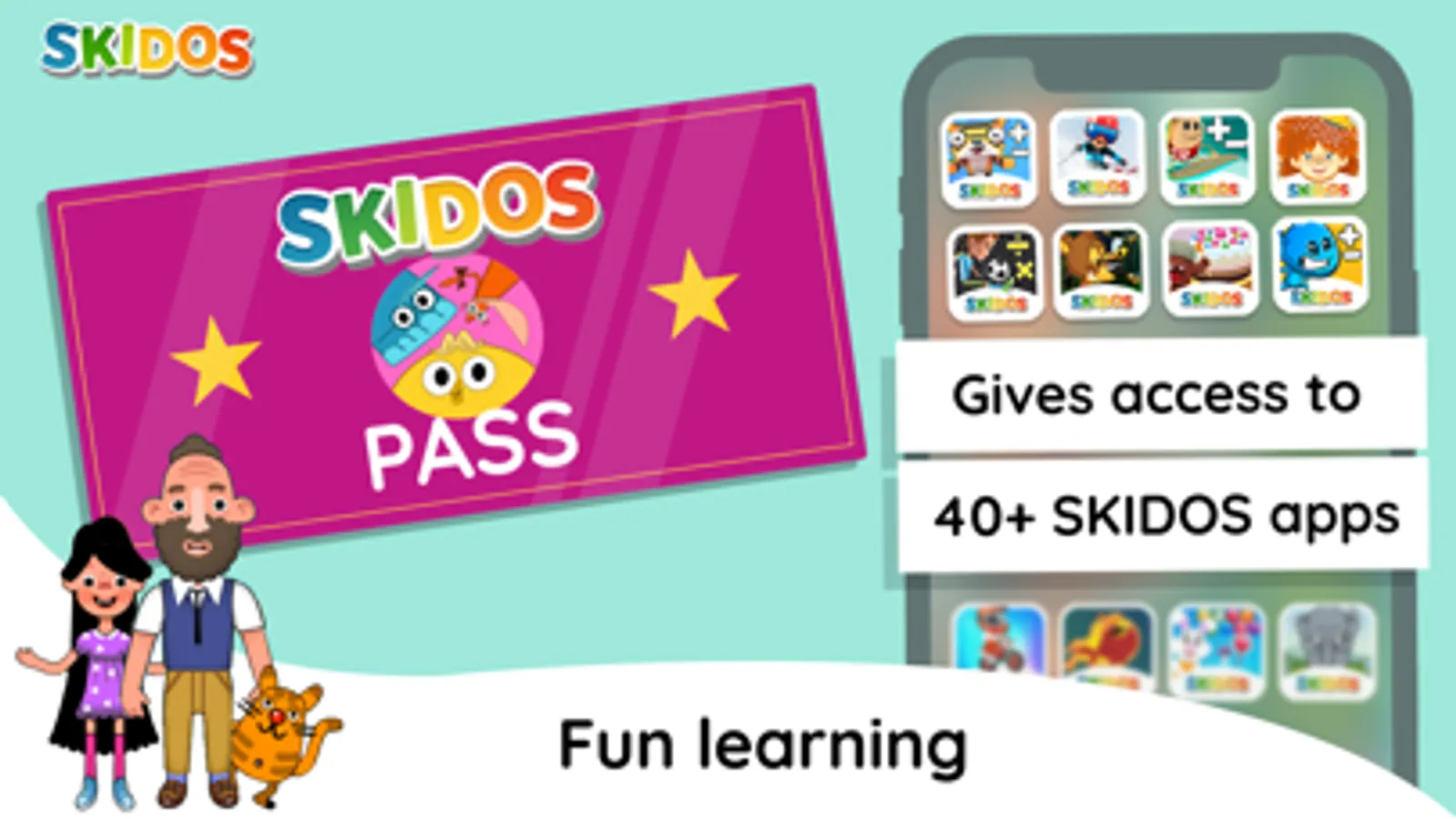With a single Pass, you access all SKIDOS apps where children of different ages will find games to every taste. You can create up to 6 player profiles within one account and log in from multiple devices. Go ahead and customize the app experience for your kids according to their interests and learning level. Stay on top of how your kids learn - check the progress report in the app or via email.
