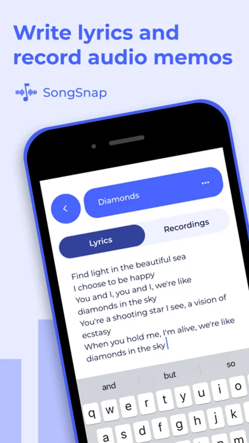 With SongSnap, you can keep track of your audio recordings, lyrics, chords, and any other song notes in one place - making it the perfect notepad app for any songwriter. Capture inspiration whenever it hits you and organize your song ideas like never before.