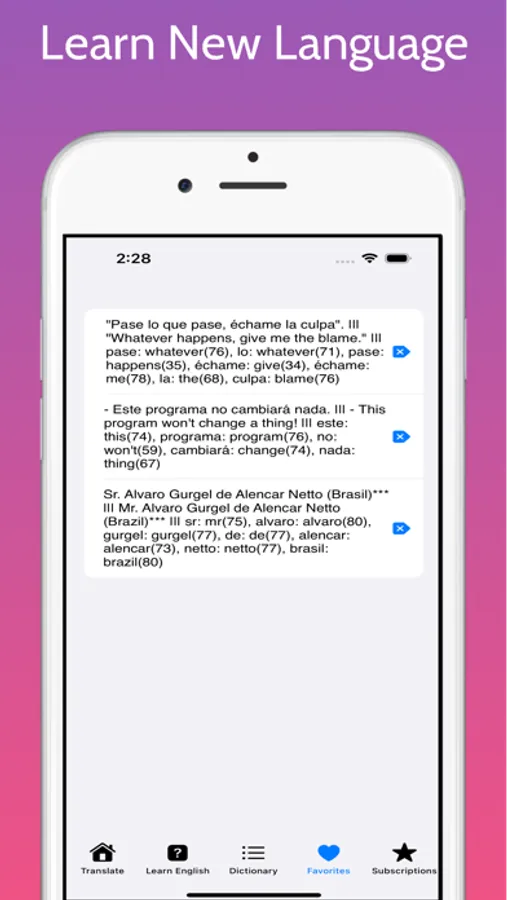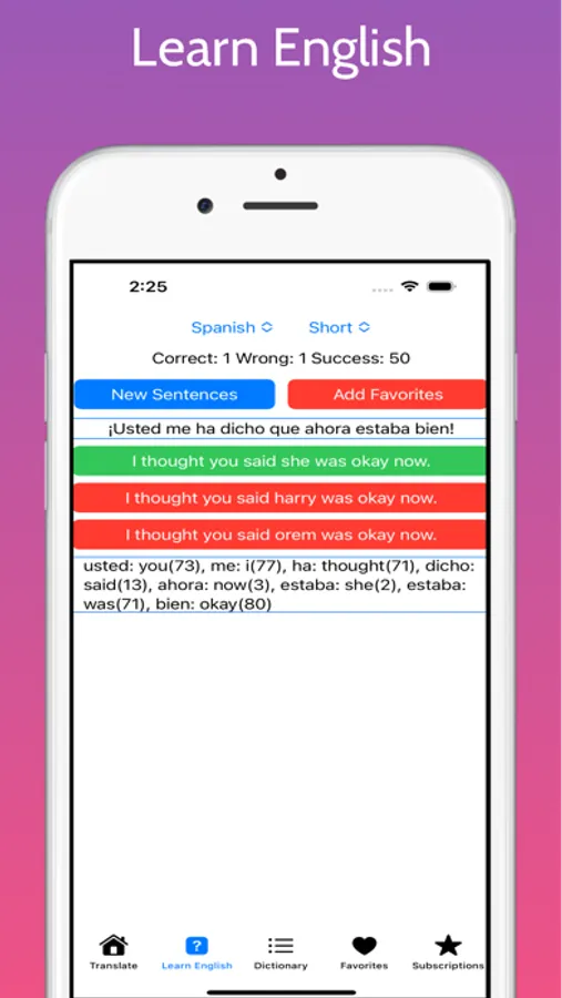 Explore new sentences with English translation and take help from AI to learn new sentences, vocabulary and pronunciation.