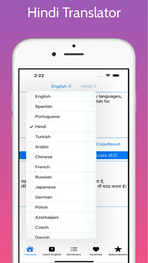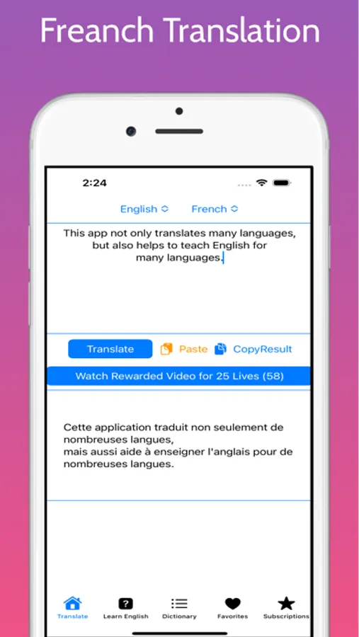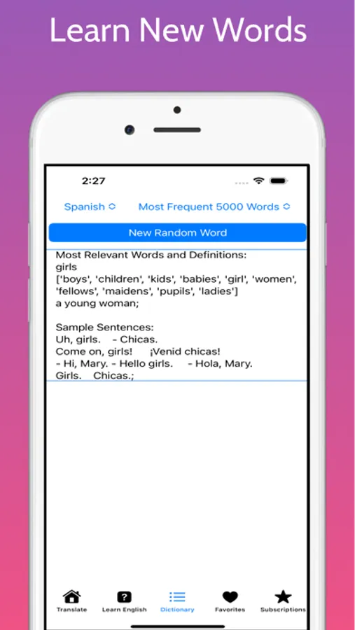 Forget the hassle of using different translator apps as you can use this all in one language tutor with English translation to learn new sentences and random words.