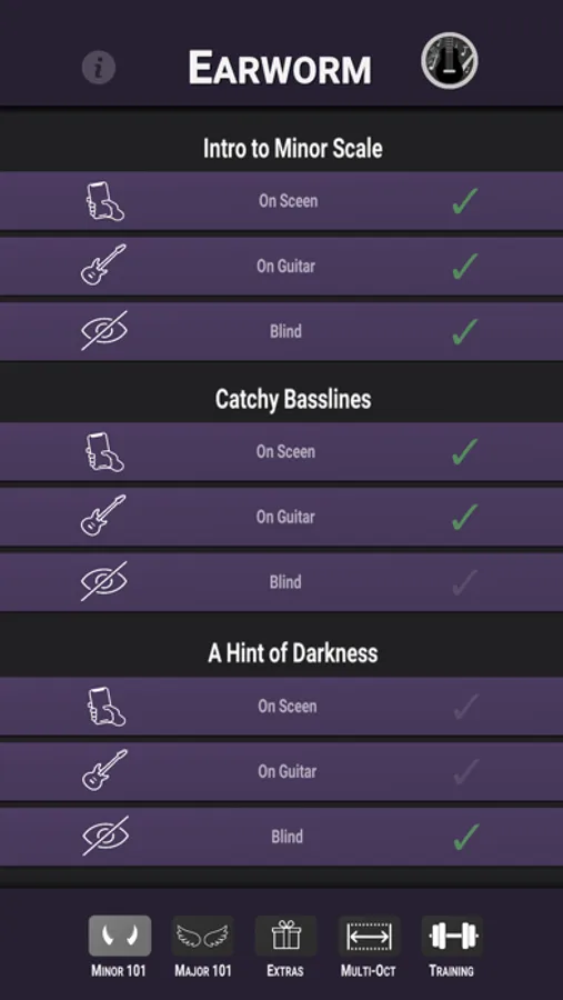You will figure out the palette of notes the melody is painted with, and finally jam along, trading bars with the app. Riffs are grouped into levels in a logical progression, slowly stretching your abilities and widening your sonic vocabulary.