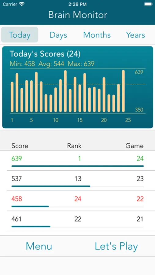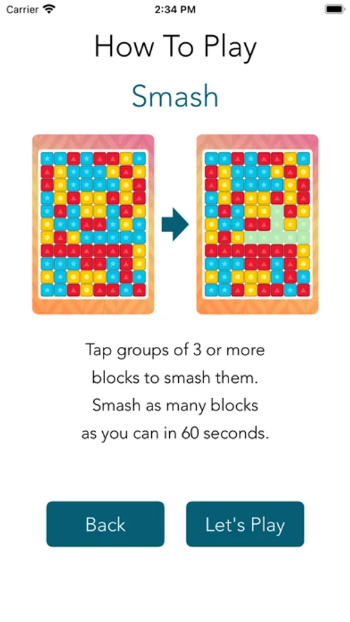 Brain Monitor measures cognitive function by tracking brain game results for up to 100 years. The game in this app, Smash, is a Match 3 game with 3 blocks. Scoring is based on the total number of blocks smashed within in 60 seconds.