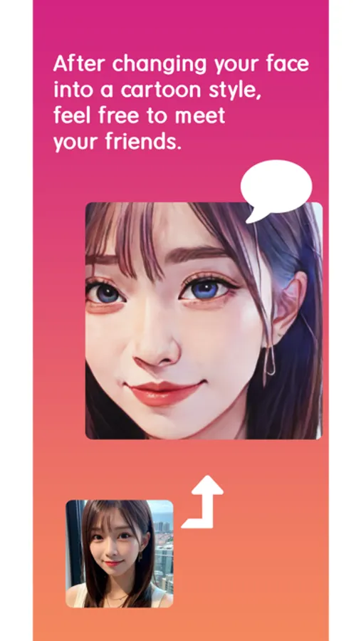 This app is called "Chattoon" and it utilizes the user's face recognition technology to change his/her face into a cartoon style, solving the problem of photo theft that has been a problem in the meantime~!