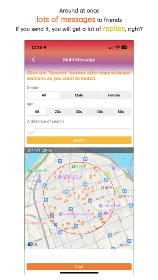 "Chattoon" also provides various search functions. Users can find friends in various ways such as distance, gender, and age, and can make voice calls.