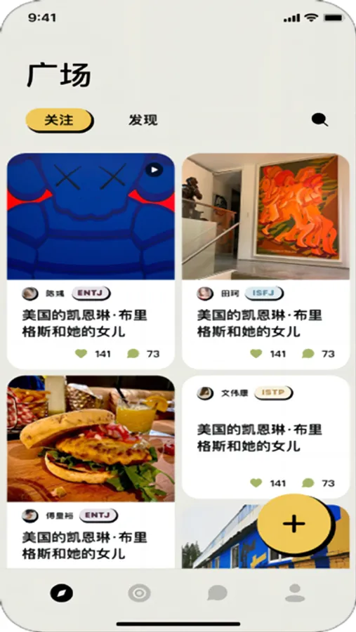 社区广场可以之间看到用户的人格标签,用户之间可以根据自身标签以及喜好标签更好的建立联系。