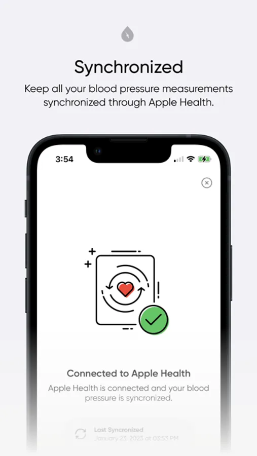 - Keep your blood pressure measurements synchronized through Apple Health.