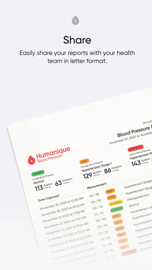 - Generate and share your FREE blood pressure reports with your physician and health team.