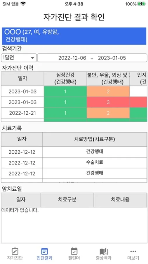 - 증상 요약 : 환자가 입력한 증상변화를 직관적인 표를 통해 확인 할 수 있습니다.