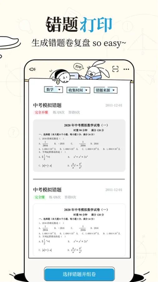 在这里你可以DIY你的错题本,打造你属于你的专属,陪你一起进步。