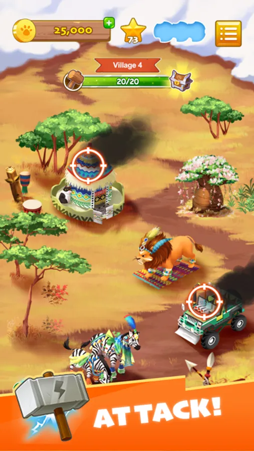 Spin the wheel to fall on your fortune, be it attack time, loot, shields or raids. Win your loot and build strong villages in the game and move up towards higher levels. Win shields to guard your village from other crazy cats trying to attack you. Become the Crazy Cat with the strongest village and the most loot!