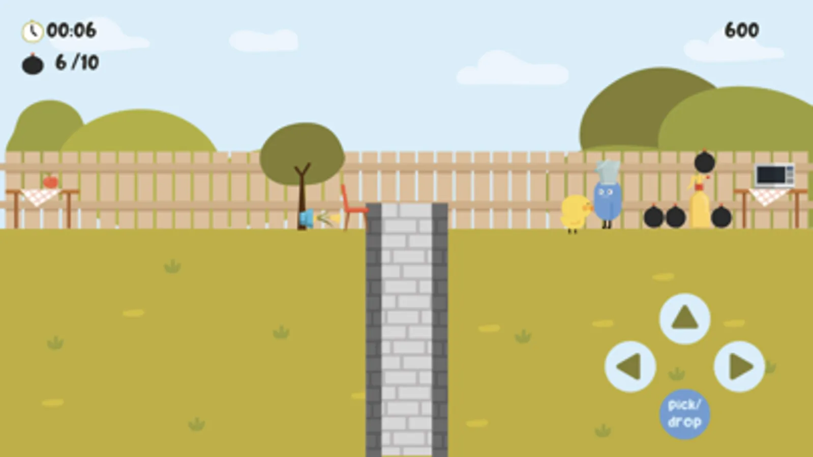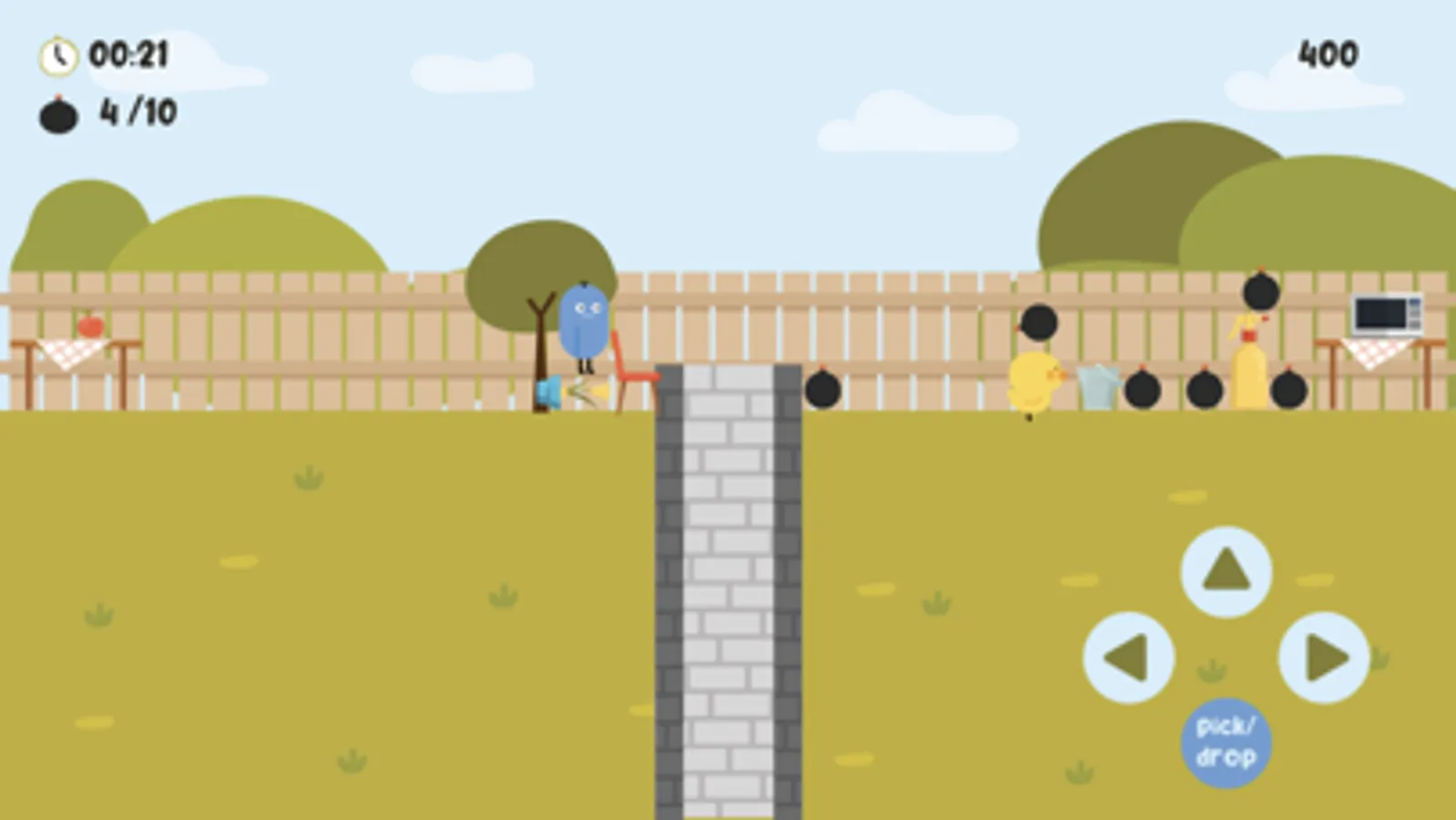 Find the bombs that are in your garden and throw it into the well, because you are too panic to see the bombs your girlfriend is very panicking and can hinder your protection of the house.