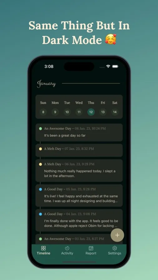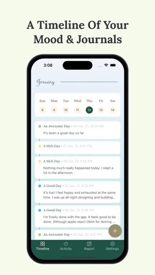 You can also use Obim as a personal diary to jot down your thoughts and feelings, and reflect on them over time. With Obim, you can get a clear picture of your overall mood trends and identify any patterns or triggers. Whether you're struggling with anxiety, depression, or just looking for a better way to manage your mental health, Obim is here to help. Try it out today and start feeling better, one day at a time.